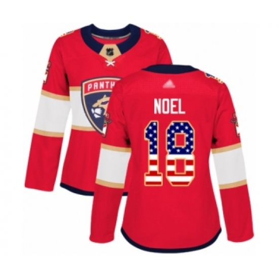 >Women's Florida Panthers #18 Serron Noel Authentic Red USA Flag Fashion Hockey Jersey