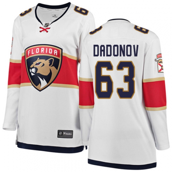 Home>NHL>Florida Panthers>Evgenii Dadonov>Women's Florida Panthers #63 Evgenii Dadonov Authentic White Away Fanatics Branded Breakaway NHL Jersey
