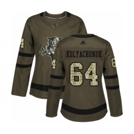 >Women's Florida Panthers #64 Vladislav Kolyachonok Authentic Green Salute to Service Hockey Jersey