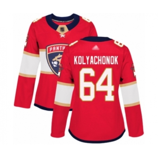 >Women's Florida Panthers #64 Vladislav Kolyachonok Authentic Red Home Hockey Jersey