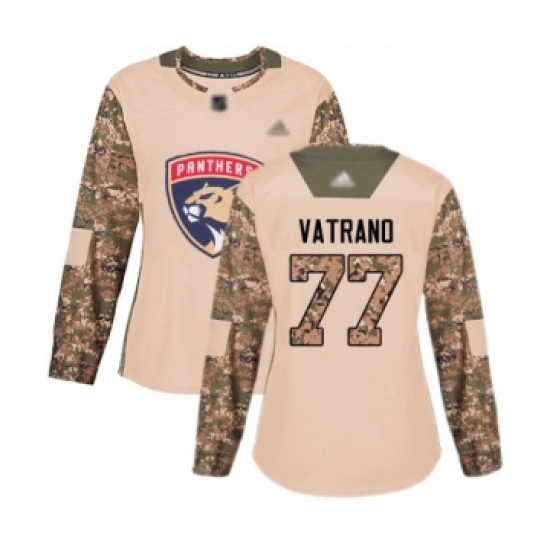 >Women's Florida Panthers #77 Frank Vatrano Authentic Camo Veterans Day Practice Hockey Jersey