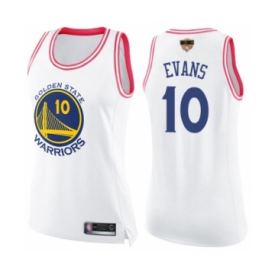 >Women's Golden State Warriors #10 Jacob Evans Swingman White Pink Fashion Basketball 2019 Basketball Finals Bound Jersey
