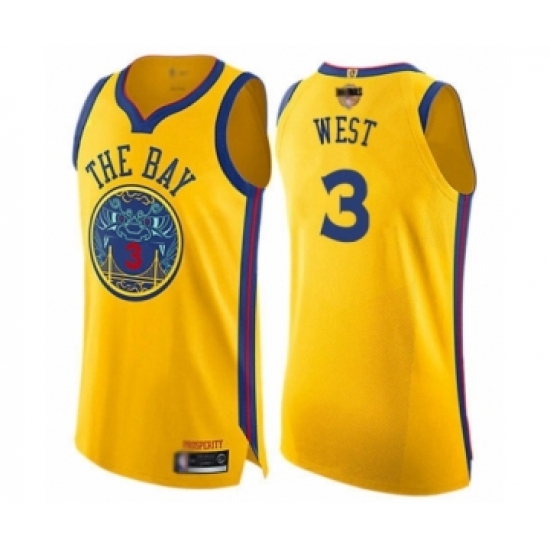 Women's Golden State Warriors #3 David West Swingman Gold 2019 Basketball Finals Bound Basketball Jersey - City Edition