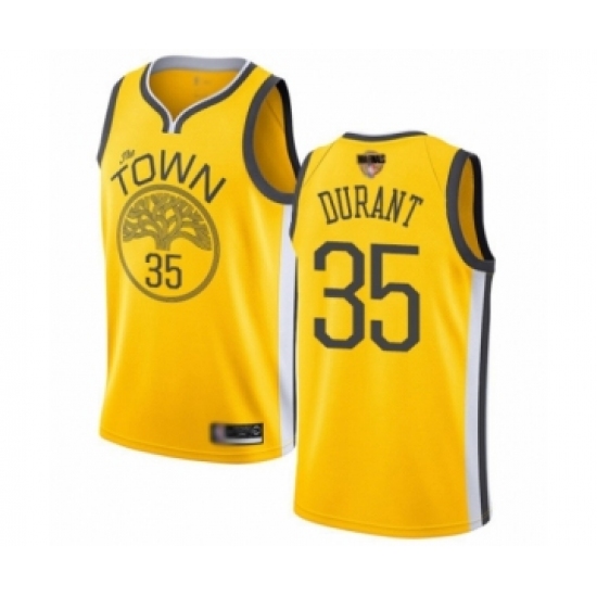 >Women's Golden State Warriors #35 Kevin Durant Yellow Swingman 2019 Basketball Finals Bound Jersey - Earned Edition