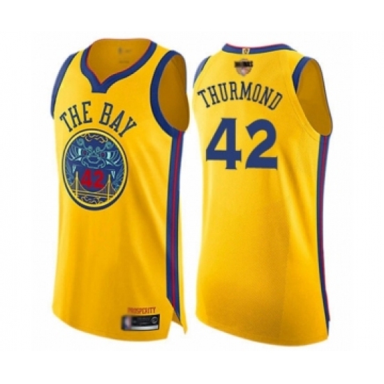 Women's Golden State Warriors #42 Nate Thurmond Swingman Gold 2019 Basketball Finals Bound Basketball Jersey - City Edition