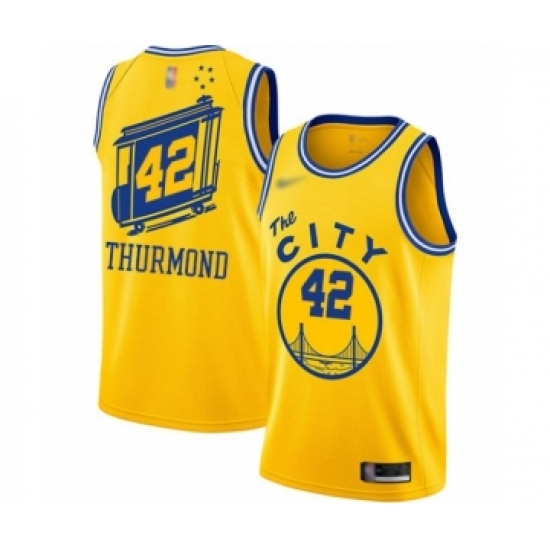 Women's Golden State Warriors #42 Nate Thurmond Swingman Gold Hardwood Classics Basketball Jersey - The City Classic Edition