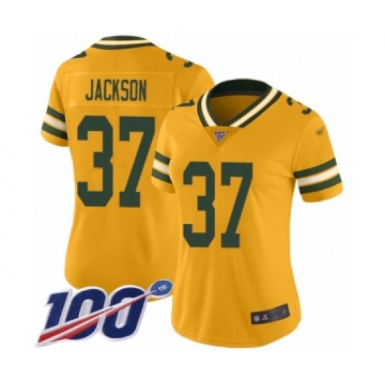 Women's Green Bay Packers #37 Josh Jackson Limited Gold Inverted Legend 100th Season Football Jersey