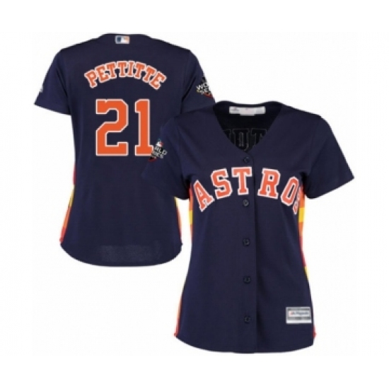 Women's Houston Astros #21 Andy Pettitte Authentic Navy Blue Alternate Cool Base 2019 World Series Bound Baseball Jersey