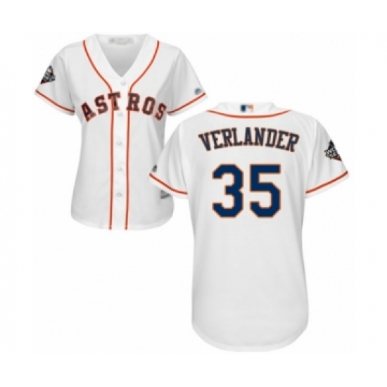 Women's Houston Astros #35 Justin Verlander Authentic White Home Cool Base 2019 World Series Bound Baseball Jersey