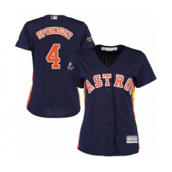 >Women's Houston Astros #4 George Springer Authentic Navy Blue Alternate Cool Base 2019 World Series Bound Baseball Jersey