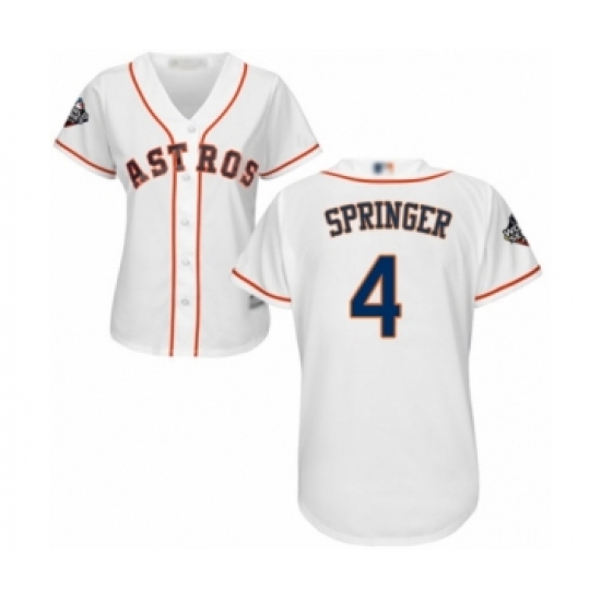 Women's Houston Astros #4 George Springer Authentic White Home Cool Base 2019 World Series Bound Baseball Jersey