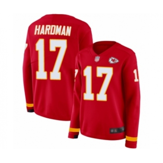 Women's Kansas City Chiefs #17 Mecole Hardman Limited Red Therma Long Sleeve Football Jersey
