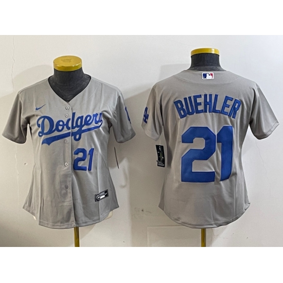 Women's Los Angeles Dodgers #21 Walker Buehler Number Grey Stitched Cool Base Nike Jersey