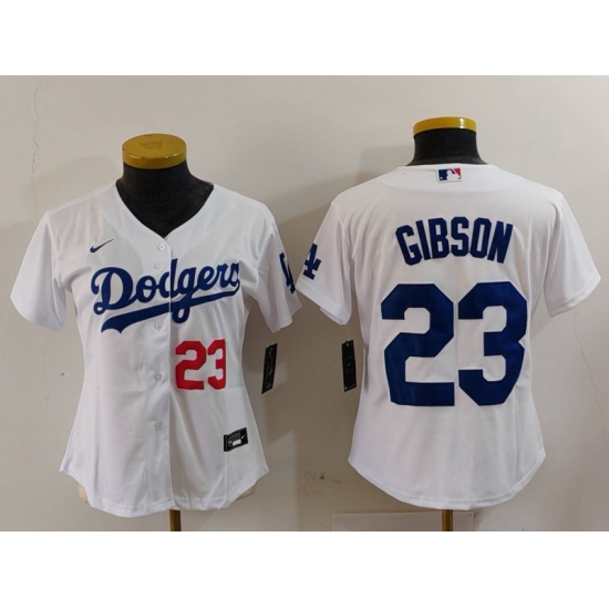 Women's Los Angeles Dodgers #23 Kirk Gibson Number White Cool Base Stitched Jersey