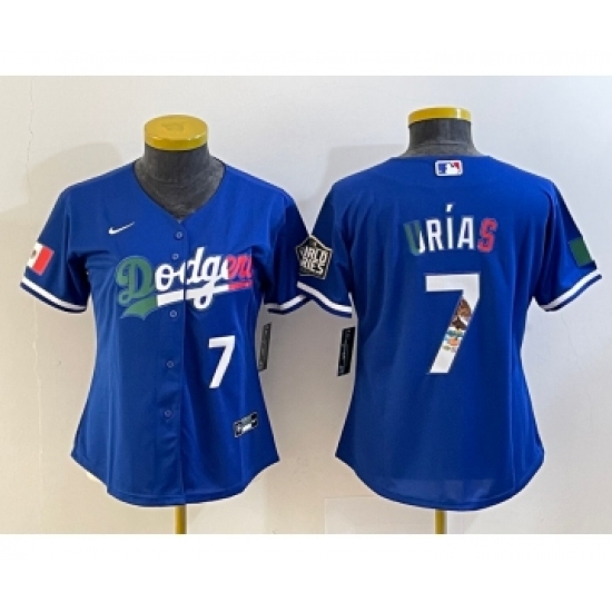 Women's Los Angeles Dodgers #7 Julio Urias Blue 2020 World Series Cool Base Nike Jersey6