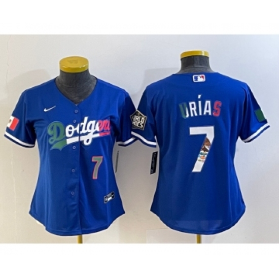 Women's Los Angeles Dodgers #7 Julio Urias Blue 2020 World Series Cool Base Nike Jersey5