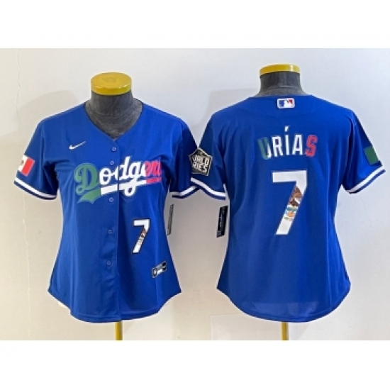 Women's Los Angeles Dodgers #7 Julio Urias Blue 2020 World Series Cool Base Nike Jersey6