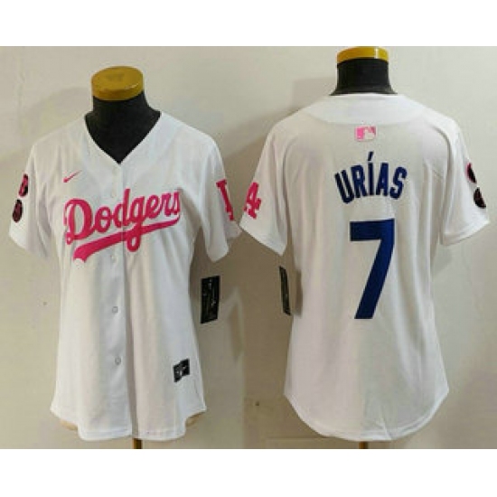 >Women's Los Angeles Dodgers #7 Julio Urias White Pink With Limited Stitched Jersey