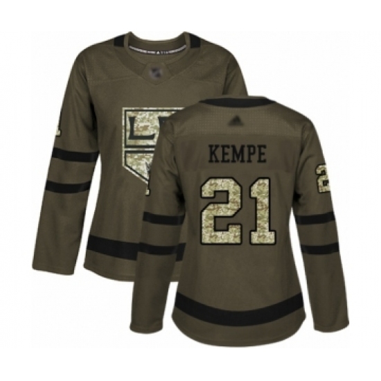 >Women's Los Angeles Kings #21 Mario Kempe Authentic Green Salute to Service Hockey Jersey