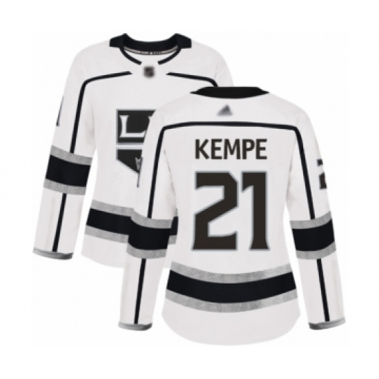Women's Los Angeles Kings #21 Mario Kempe Authentic White Away Hockey Jersey