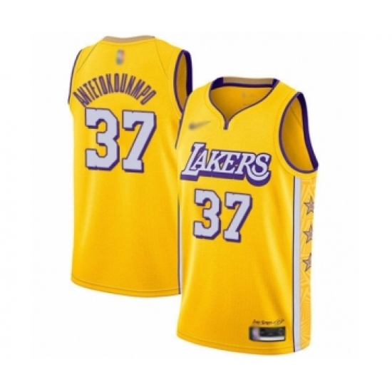 >Women's Los Angeles Lakers #37 Kostas Antetokounmpo Swingman Gold Basketball Jersey - 2019 20 City Edition