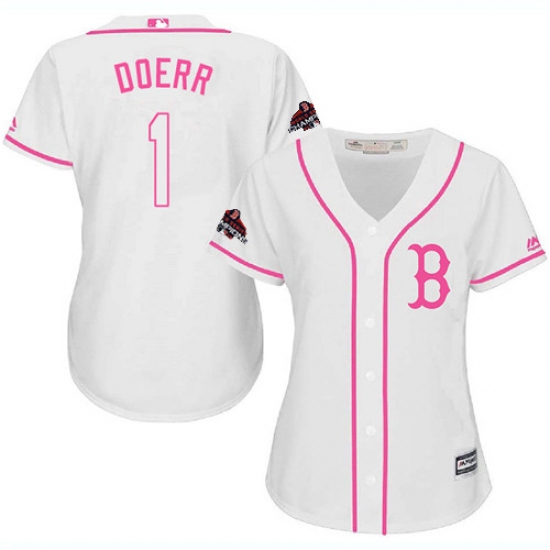 Women's Majestic Boston Red Sox #1 Bobby Doerr Authentic White Fashion 2018 World Series Champions MLB Jersey