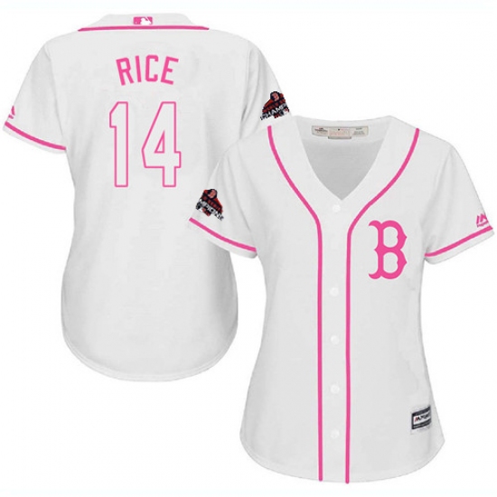 Women's Majestic Boston Red Sox #14 Jim Rice Authentic White Fashion 2018 World Series Champions MLB Jersey