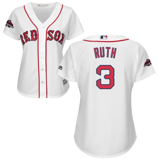 Women's Majestic Boston Red Sox #3 Babe Ruth Authentic White Home 2018 World Series Champions MLB Jersey