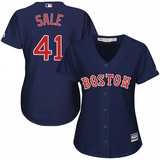 Women's Majestic Boston Red Sox #41 Chris Sale Replica Navy Blue Alternate Road MLB Jersey
