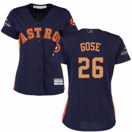 >Women's Majestic Houston Astros #26 Anthony Gose Authentic Navy Blue Alternate 2018 Gold Program Cool Base MLB Jersey