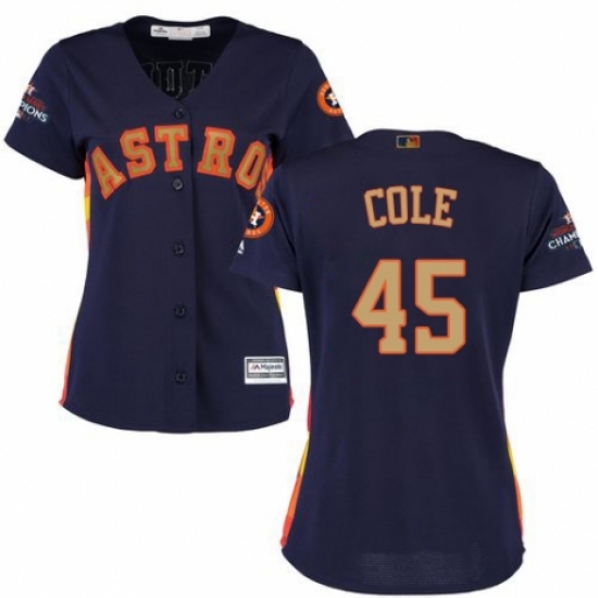 >Women's Majestic Houston Astros #45 Gerrit Cole Authentic Navy Blue Alternate 2018 Gold Program Cool Base MLB Jersey