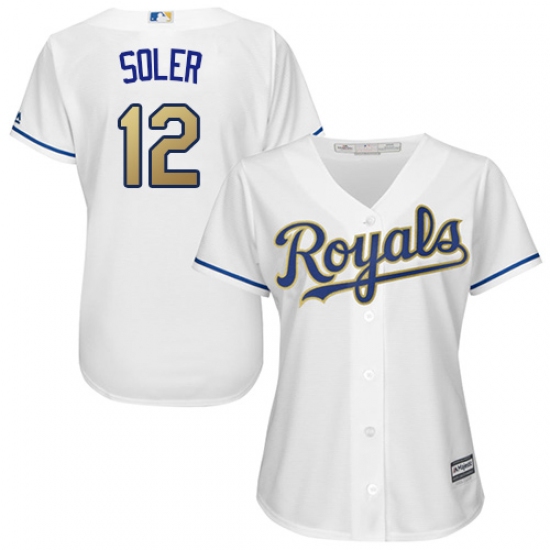 Home>MLB>Kansas City Royals>Jorge Soler>Women's Majestic Kansas City Royals #12 Jorge Soler Authentic White Home Cool Base MLB Jersey