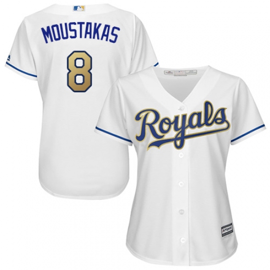 Home>MLB>Kansas City Royals>Mike Moustakas>Women's Majestic Kansas City Royals #8 Mike Moustakas Replica White Home Cool Base MLB Jersey