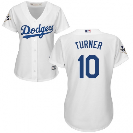 Home>MLB>Los Angeles Dodgers>Justin Turner>Women's Majestic Los Angeles Dodgers #10 Justin Turner Replica White Home 2017 World Series Bound Cool Base MLB Jersey