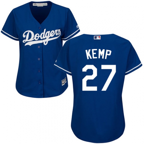 Home>MLB>Los Angeles Dodgers>Matt Kemp>Women's Majestic Los Angeles Dodgers #27 Matt Kemp Authentic Royal Blue Alternate Cool Base MLB Jersey