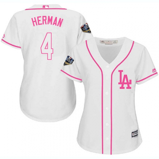 Women's Majestic Los Angeles Dodgers #4 Babe Herman Authentic Pink Fashion Cool Base 2018 World Series MLB Jersey