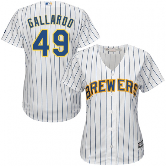 Home>MLB>Milwaukee Brewers>Yovani Gallardo>Women's Majestic Milwaukee Brewers #49 Yovani Gallardo Replica White Alternate Cool Base MLB Jersey