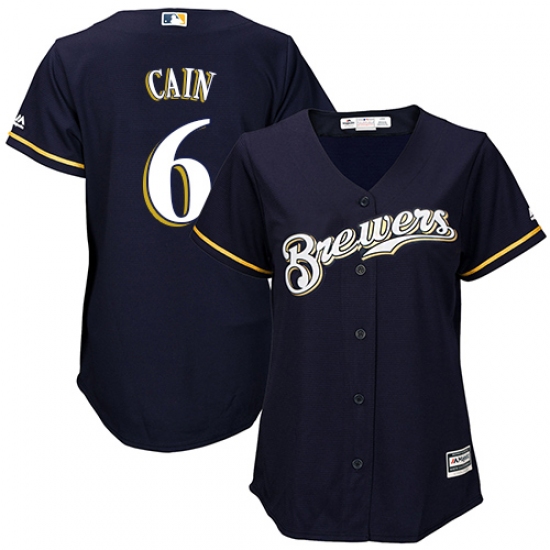 Home>MLB>Milwaukee Brewers>Lorenzo Cain>Women's Majestic Milwaukee Brewers #6 Lorenzo Cain Replica Navy Blue Alternate Cool Base MLB Jersey