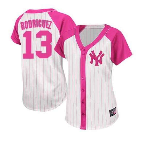 Women's Majestic New York Yankees #13 Alex Rodriguez Authentic White/Pink Splash Fashion MLB Jersey