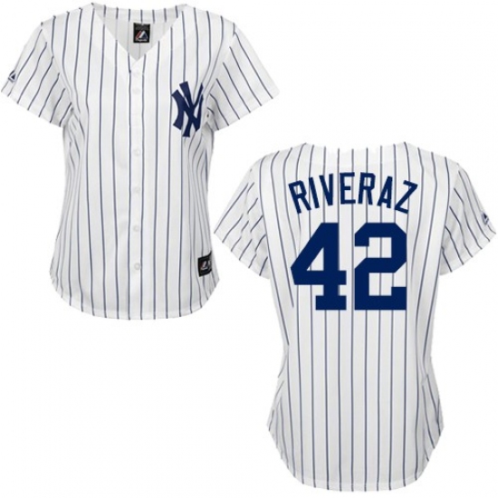 Women's Majestic New York Yankees #42 Mariano Rivera Authentic White/Black Strip MLB Jersey