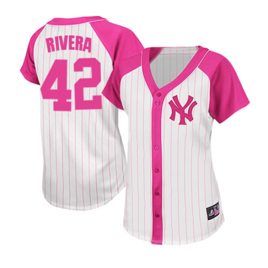 Women's Majestic New York Yankees #42 Mariano Rivera Replica White/Pink Splash Fashion MLB Jersey