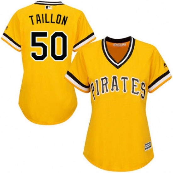 >Women's Majestic Pittsburgh Pirates #50 Jameson Taillon Authentic Gold Alternate Cool Base MLB Jersey