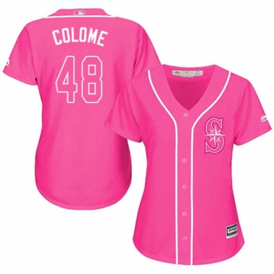 >Women's Majestic Seattle Mariners #48 Alex Colome Replica Pink Fashion Cool Base MLB Jersey