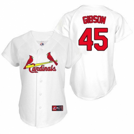 >Women's Majestic St. Louis Cardinals #45 Bob Gibson Replica White Home MLB Jersey