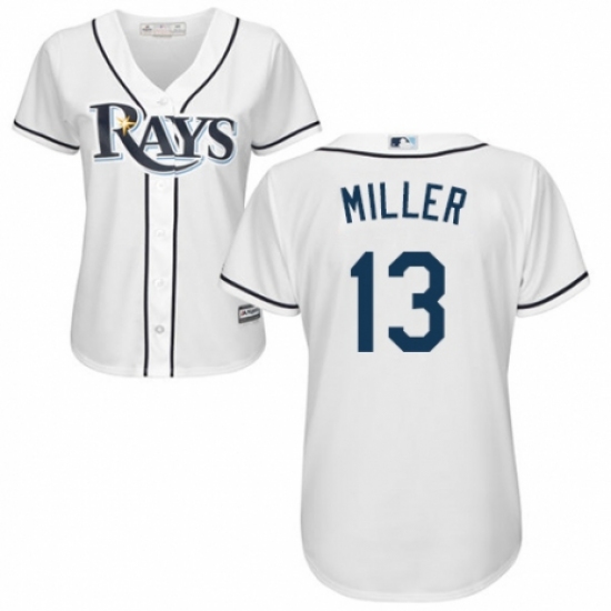 Women's Majestic Tampa Bay Rays #13 Brad Miller Authentic White Home Cool Base MLB Jersey