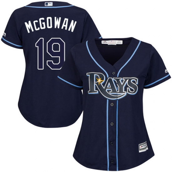 Home>MLB>Tampa Bay Rays>Dustin McGowan>Women's Majestic Tampa Bay Rays #19 Dustin McGowan Authentic Navy Blue Alternate Cool Base MLB Jersey