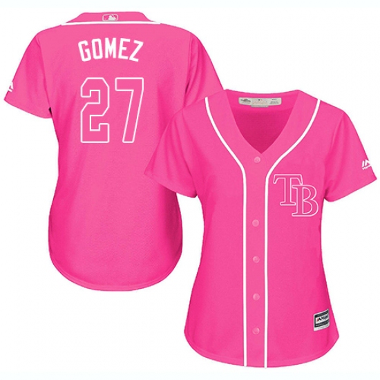Home>MLB>Tampa Bay Rays>Carlos Gomez>Women's Majestic Tampa Bay Rays #27 Carlos Gomez Replica Pink Fashion Cool Base MLB Jersey