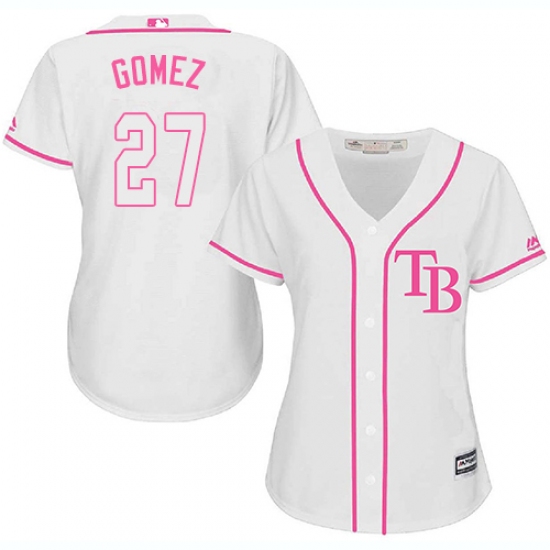 Home>MLB>Tampa Bay Rays>Carlos Gomez>Women's Majestic Tampa Bay Rays #27 Carlos Gomez Replica White Fashion Cool Base MLB Jersey