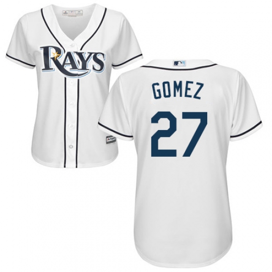 Home>MLB>Tampa Bay Rays>Carlos Gomez>Women's Majestic Tampa Bay Rays #27 Carlos Gomez Replica White Home Cool Base MLB Jersey