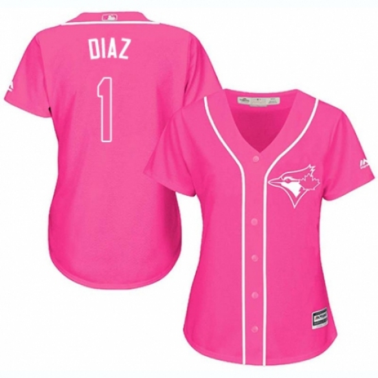 >Women's Majestic Toronto Blue Jays #1 Aledmys Diaz Authentic Pink Fashion Cool Base MLB Jersey